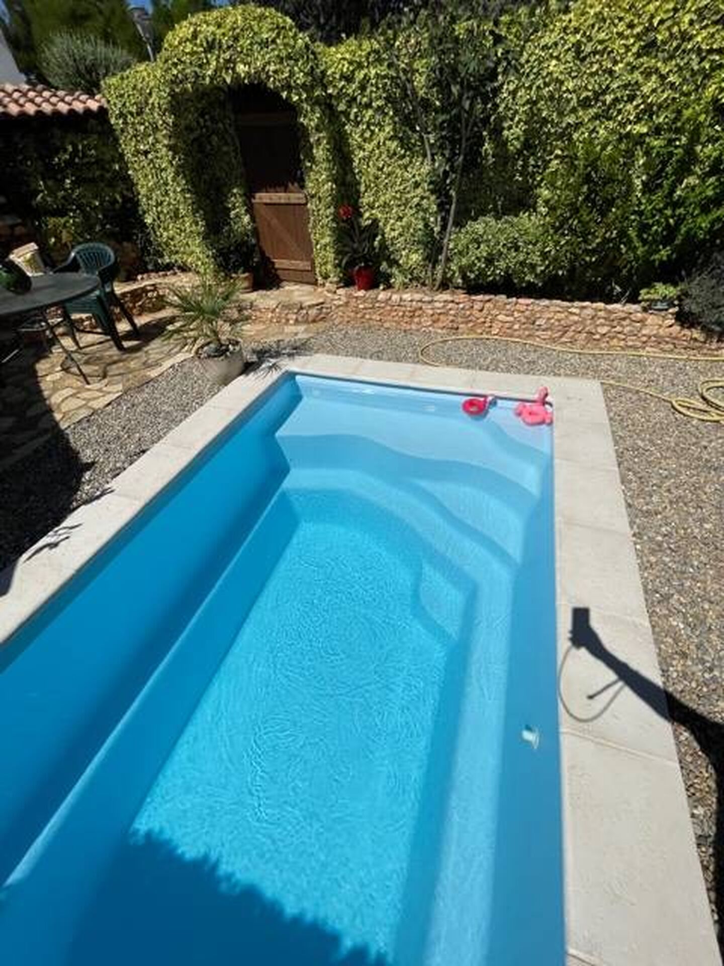 Cette piscine est fabriquée en France et peut être associée avec de nombreuses options comme une bâche de sécurité.